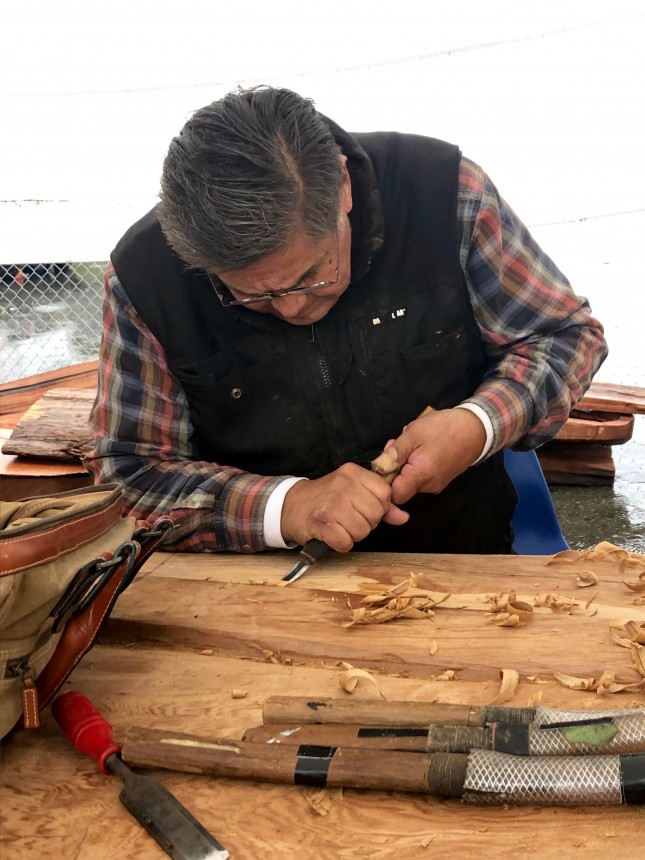 “The whole purpose of this pole is to say what we have left in the way of history and language,” said Paul in an interview at the carving site. “People should see that much more than anything else, this is who we are and what we need to save.”