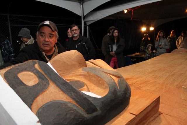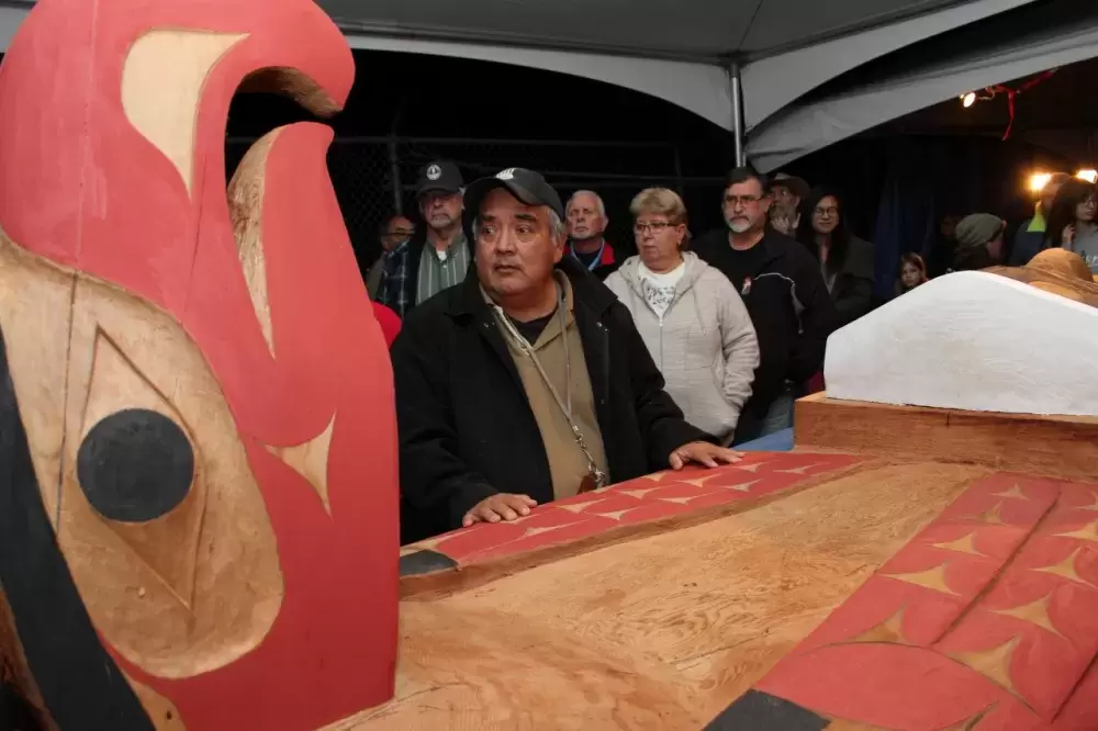 During a presentation of the nearly completed pole on Oct. 24, Huu-ay-aht Ha’wilth Jeff Cook reflected on how his mother tongue was affected when he left Sarita at the age of 6 to attend the Alberni Indian Residential School.