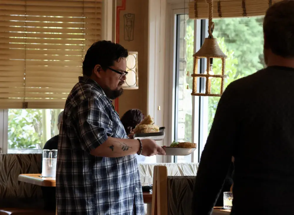 “There are only two Indigenous servers in the Tofino area,” says TFN career server Joe Bob, a father of four who works three a shifts a week at ROAR Restaurant within Mandy Farmer’s ‘70s themed Hotel Zed.