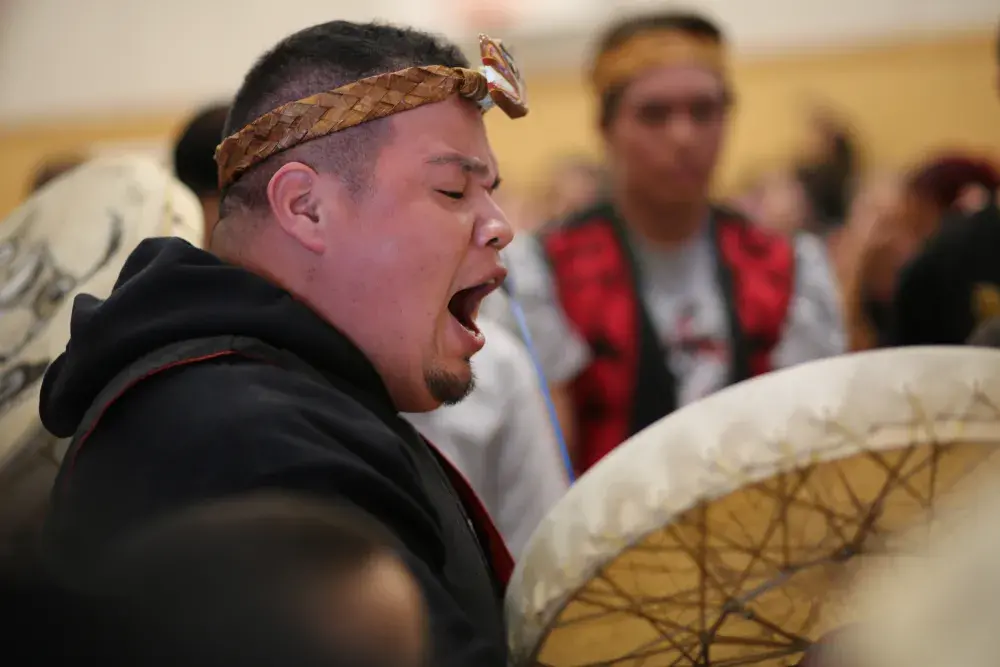 The Hesquiaht member and his group performed a song that originated from Charleson’s time at the Christie Indian Residential School. He always remembered singing Praise Him in the Morning, a Christian song from the residential school’s Sunday morning bible studies.