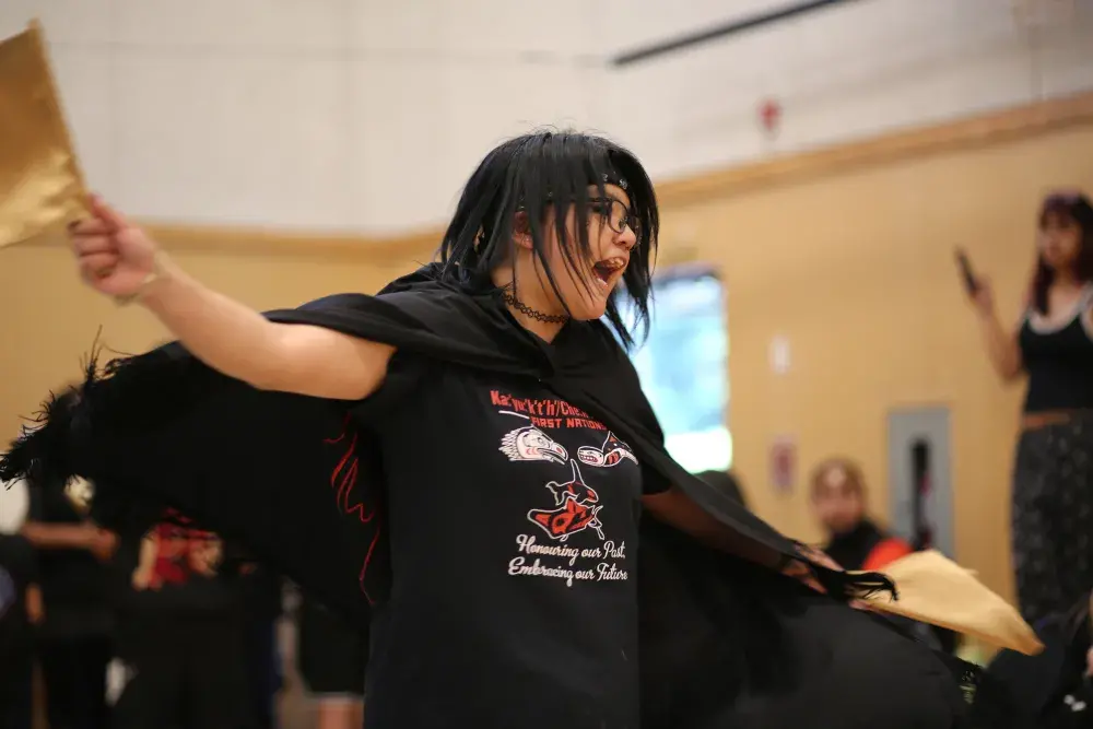 Each year a different community in School District 84 hosts an Indigenous cultural event, a tradition that started in 2010 with a school feast and naming ceremony in Tahsis. Preparations for the Zeballos ƛiic̕uu were underway since September, with weekly dance practices, the preparation of gifts and even formal invitations that students delivered in person to the schools that attended to participate. Joining the local performers from Ehattesaht territory, contingents came from Ahousaht, Gold River, Tahsis, Kyuquot and even Hisukʔiš c’awaak, a cultural group from Nanaimo.