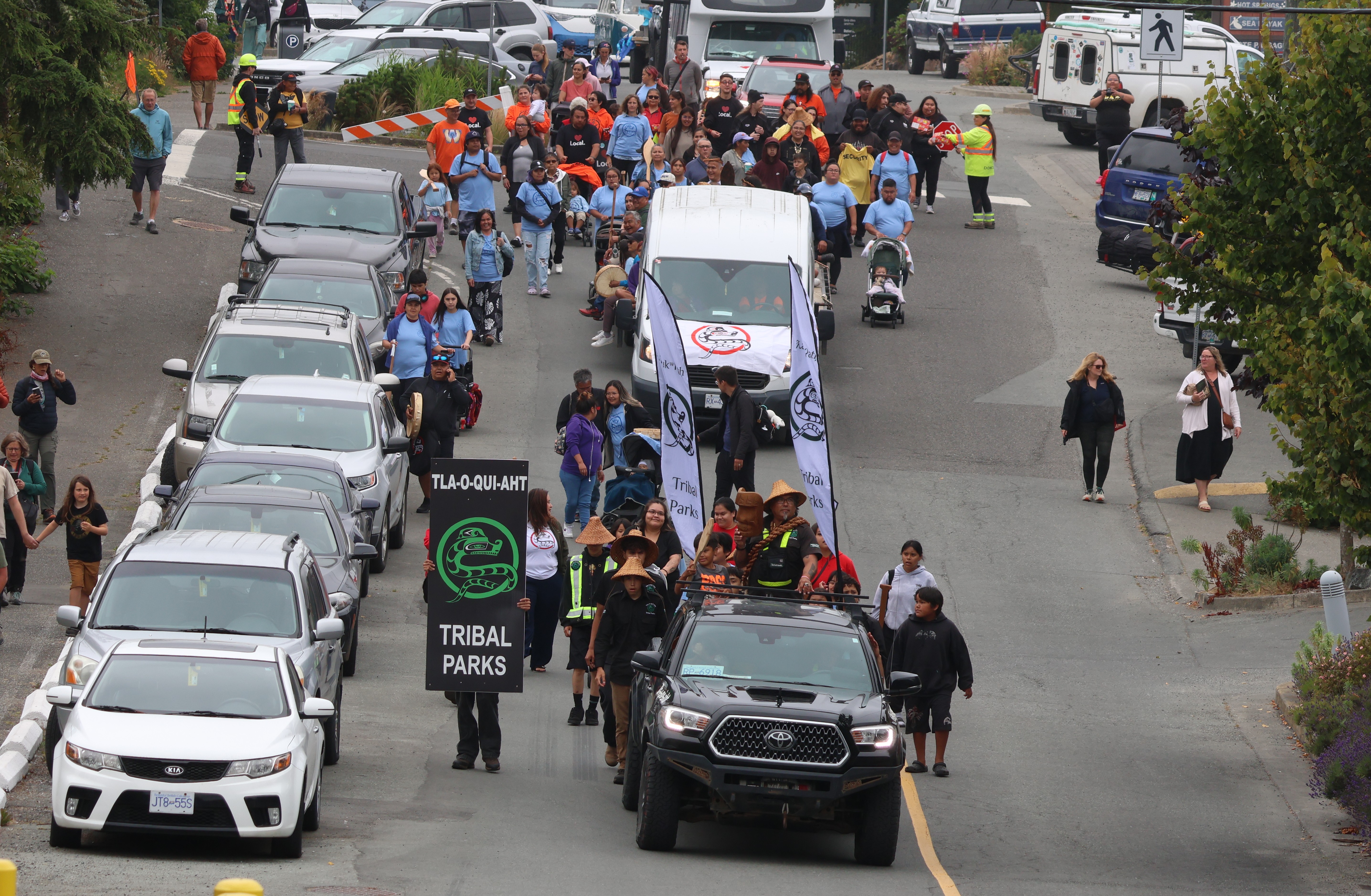 Tla-o-qui-aht Days festivities kicked off on Monday, Aug. 4 with a mid-morning parade through the streets of downtown Tofino and flag raising ceremony in front of the municipal building.