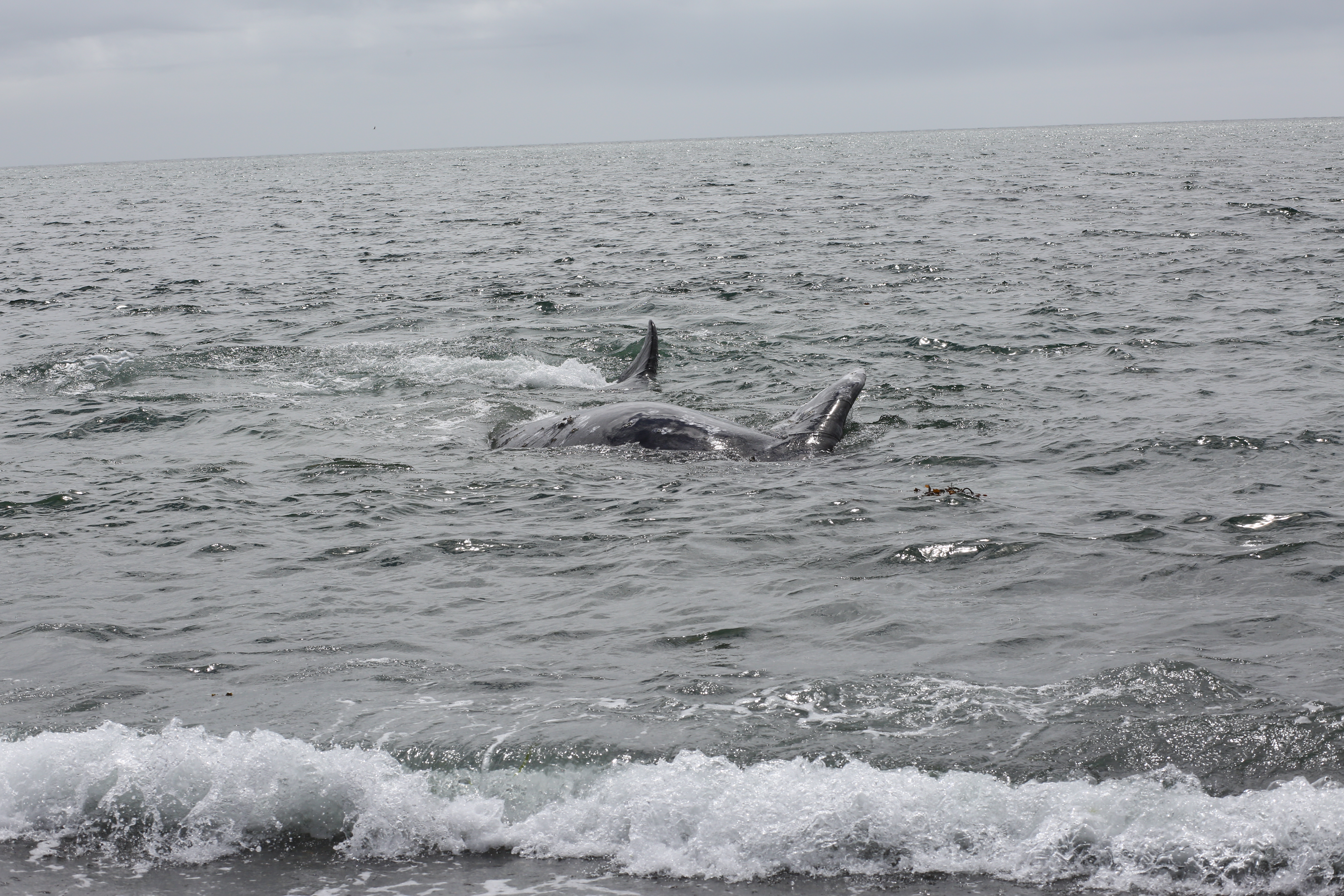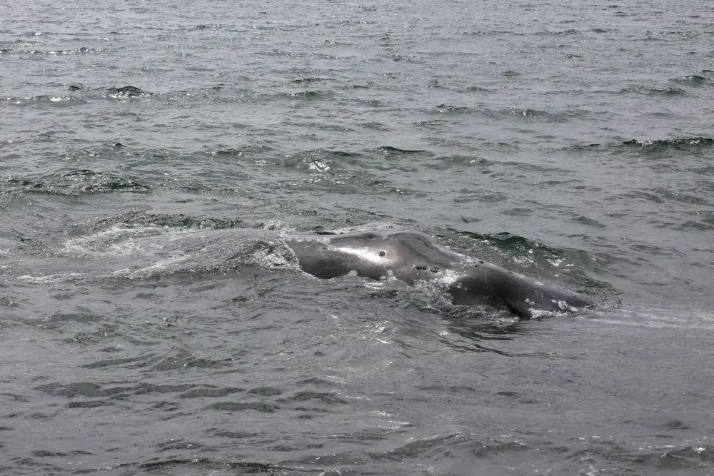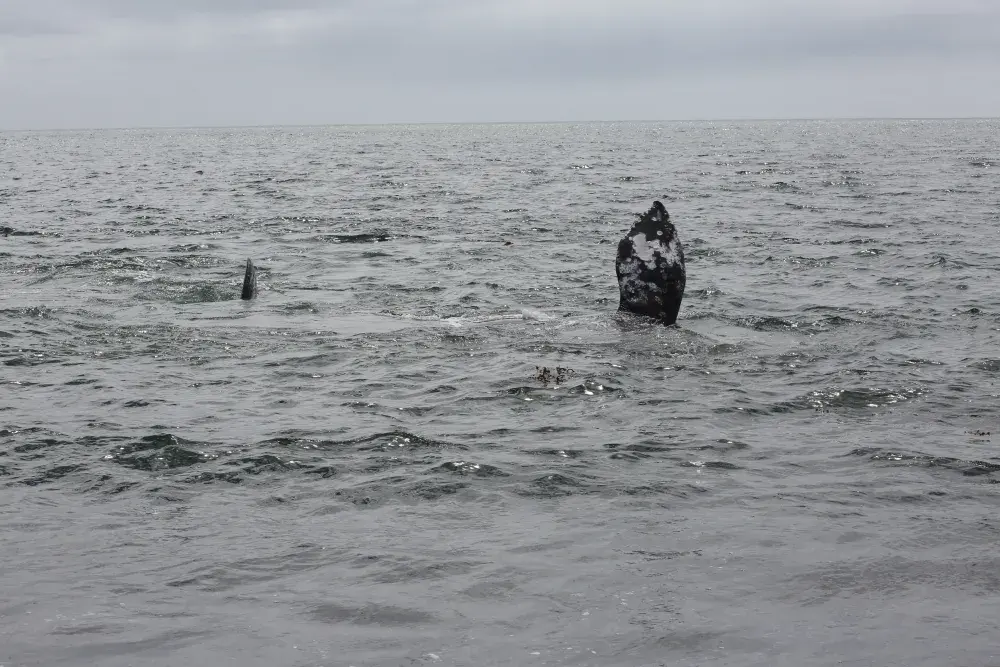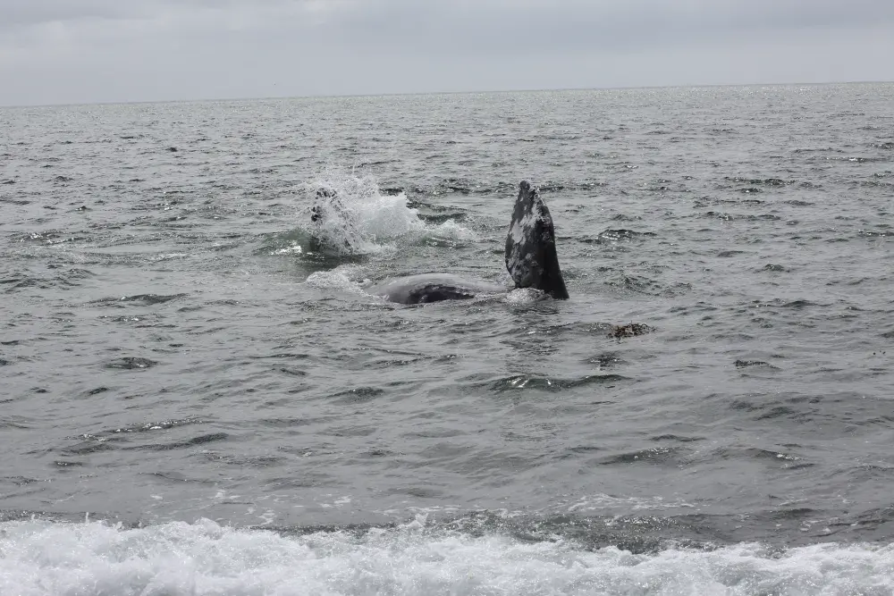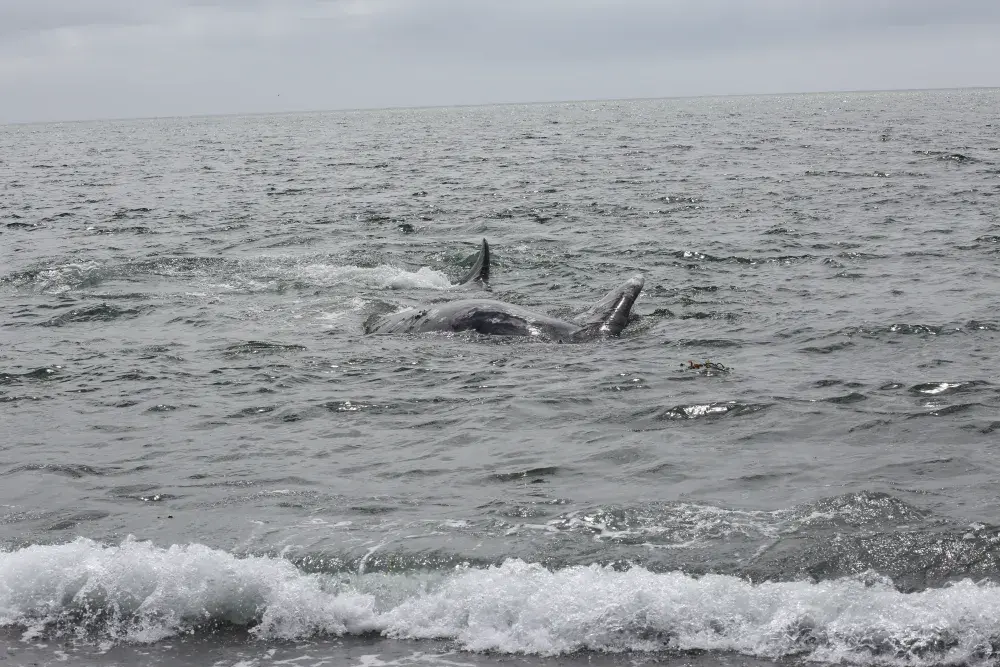 A grey whale came to the shore of Yuquot on Aug. 2, exposing its fins above the surf as the massive animal rolled against the pebbled floor below the surface. The visitation seemed appropriate, as a celebration was underway on the site of the ancient Mowachaht village, where societies subsisted off the passing cetaceans for thousands of years.