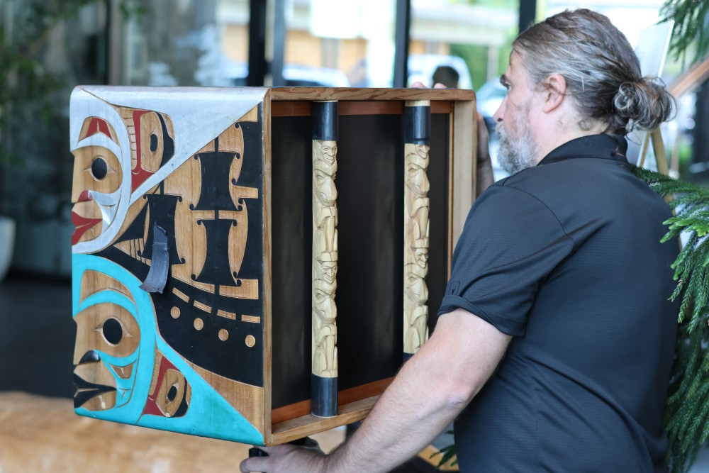 Williams received a $17,000 commission to create the bentwood box with funding from the BC Arts Council, the Hamber Foundation and the Wenjack/Downie Foundation while Smid received compensation for his travel expenses.