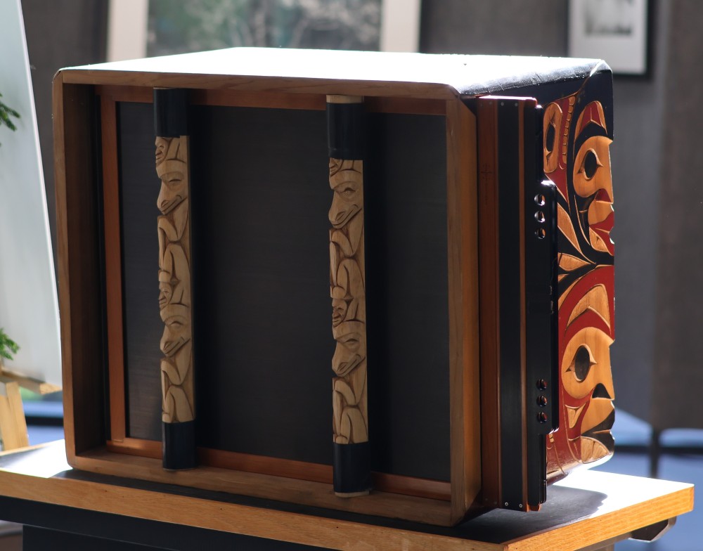 “It’s me and my brother because we are the last family to live in Yuquot after my dad died. The flapper represents me because I only go home once a year to carve. That’s me going back home once a year,” he said.