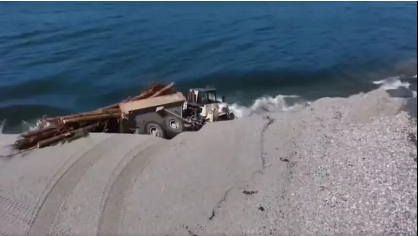 A video of the incident has gone viral on social media. Posted by Roc-Star Enterprises, the video shows an industrial truck loaded with logs driving onto an embankment on Nitinaht Lake when the soil gives way, causing the truck to tumble sideways into the lake. The driver reportedly escaped through a window and swam ashore, uninjured.