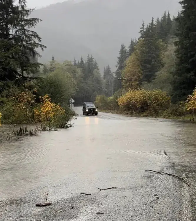 In recent years Bamfield Main has received over $40 million in major upgrades that built up the road and replaced its gravel and dirt surface with a smoother chip-sealed coat. But flooding during heavy rainfall remains a concern – a dynamic that tuned tragic on Oct. 18, 2024 when Bamfield locals Bob Baden and Ken Duncan lost their lives as the flooded road swept their vehicles into the Sarita River during high tide.