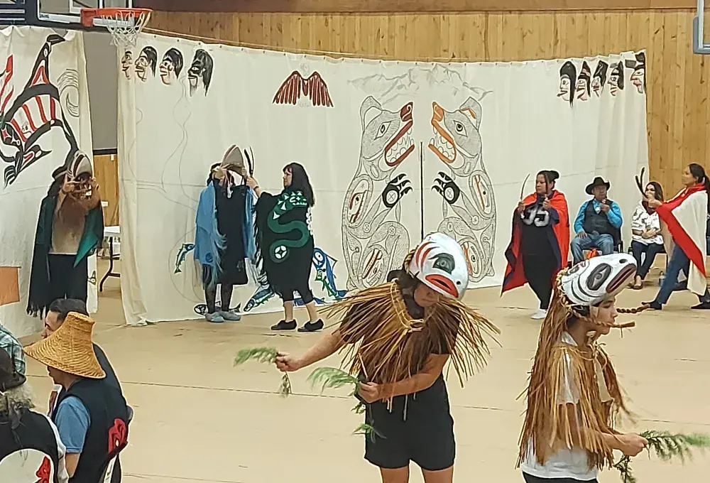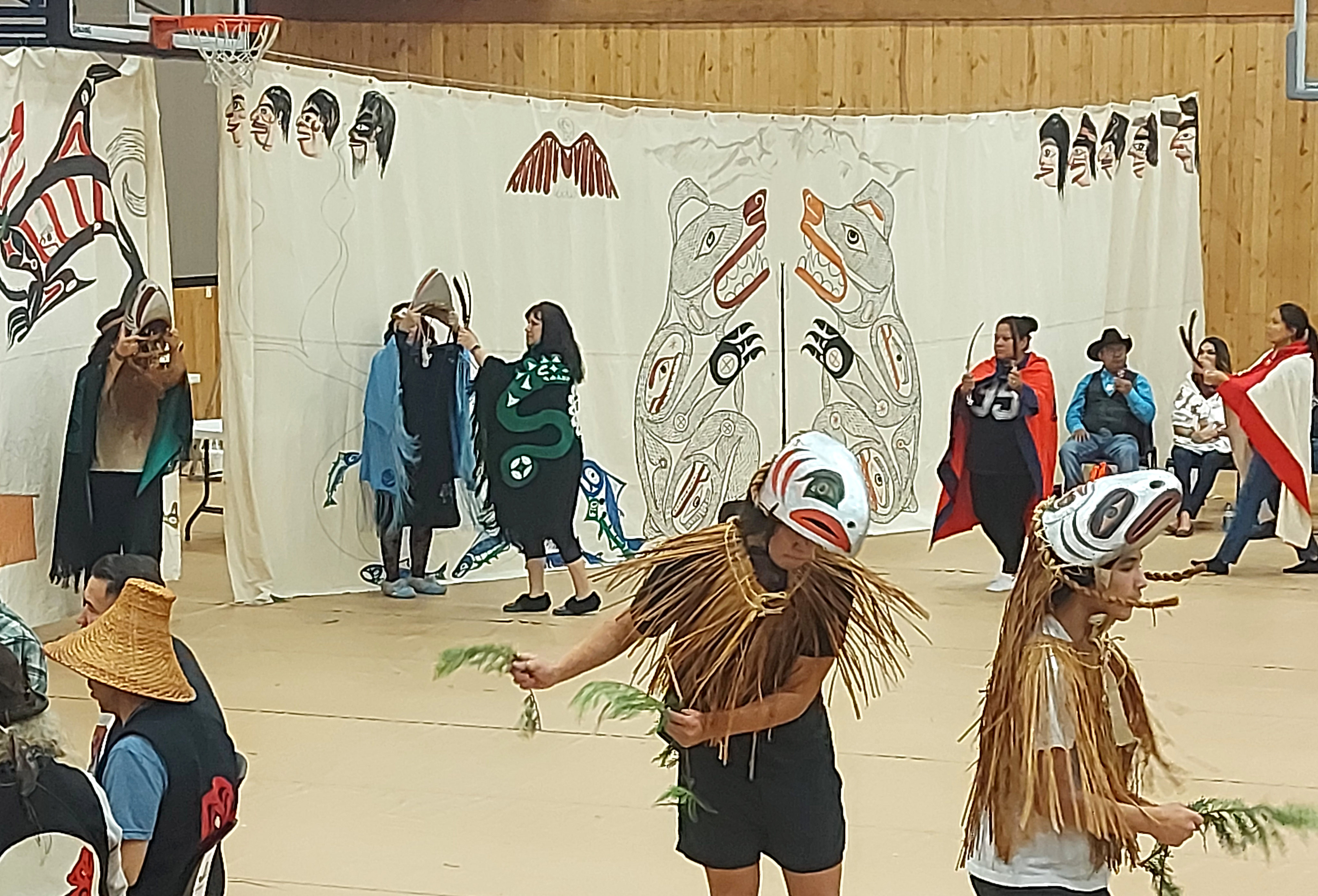 Hundreds came to the Alberni Athletic Hall on Nov. 1 and 2 for the potlatch held to celebrate migratory salmon. Hosted by Hupacasath Ha’wilth Tsu Tsii In, Alton Watts, and Hesquiaht elder and artist Aniičačist, Tim Paul, the gathering was held to display a “commitment to the health of migratory wild salmon in the face of continued threats from open net pen fish farms.” The potlatch brought together chiefs from across Vancouver Island and as far south as the Winnemem Wintu Tribe from California, where leaders signed a declaration “on wild salmon and the economic and cultural health of B.C.’s coastal communities”.