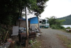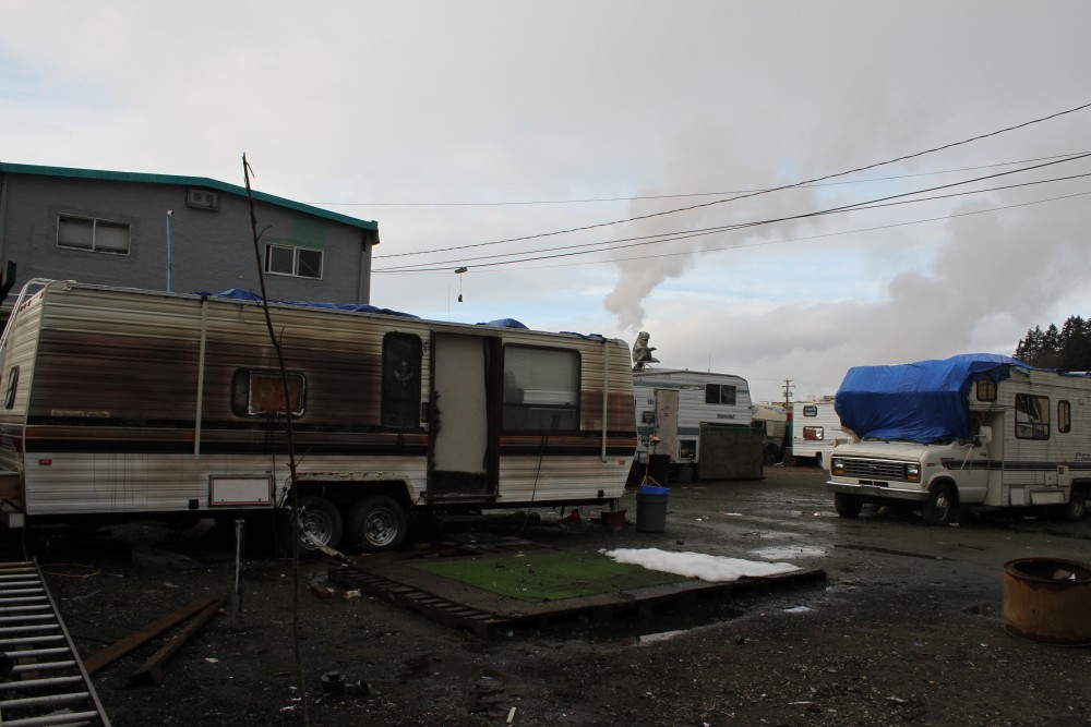 The issue of people living in motor homes and trailers is not unique to the Alberni Valley’s First Nation reserves. For years the city tried remove a community of trailers from a property on 4th Avenue, an empty lot that was cleared after a fire destroyed a low-rent apartment building in July 2013. Dozens of trailers were set up on the property, where the landlord reportedly charged $375-500 in monthly rent for those needing shelter.