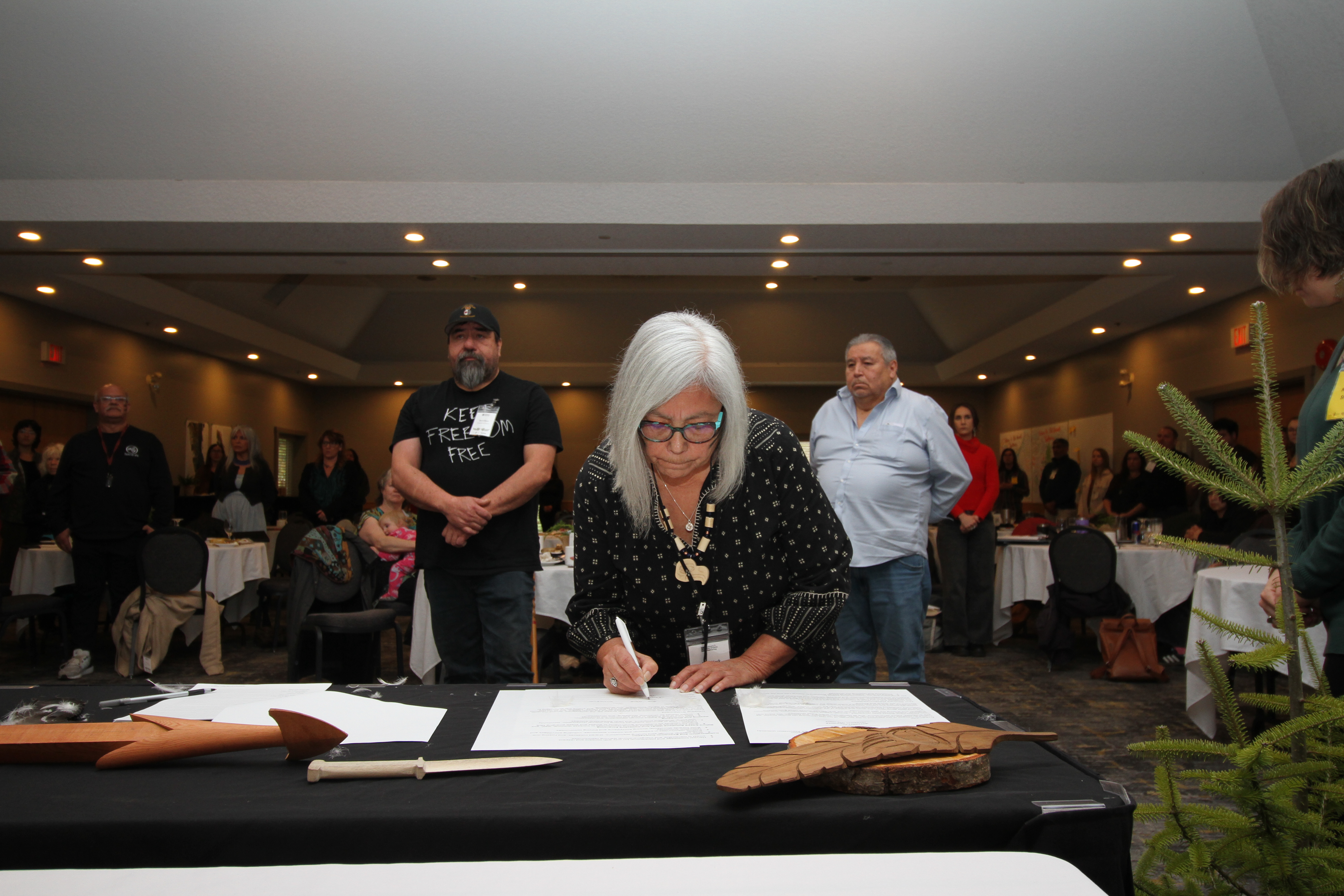 For a week in January the foundation hosted the Estuary to Old Growth Gathering in Parksville, bringing together a conference room full of representatives from Nuu-chah-nulth, Coast Salish, Kwakwaka’wakw and Haida nations. During the event delegates were presented with the Estuary to Old Growth Declaration, which outlines a commitment to protect and restore territories, as well as “care for cultural keystone species through shared stewardship and knowledge exchange”.